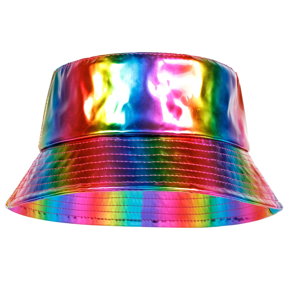 Ce bob holographique arc-en-ciel multicolore est bien plus qu’un simple couvre-chef. C’est la pièce maîtresse qui transforme une tenue simple en une déclaration de mode audacieuse. 👕✨