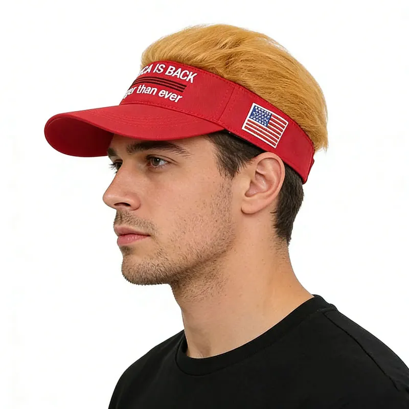 Chaque détail a été pensé pour reproduire fidèlement l’iconique casquette Make America Great Again avec cheveux de Donald Trump tout en assurant confort et solidité.