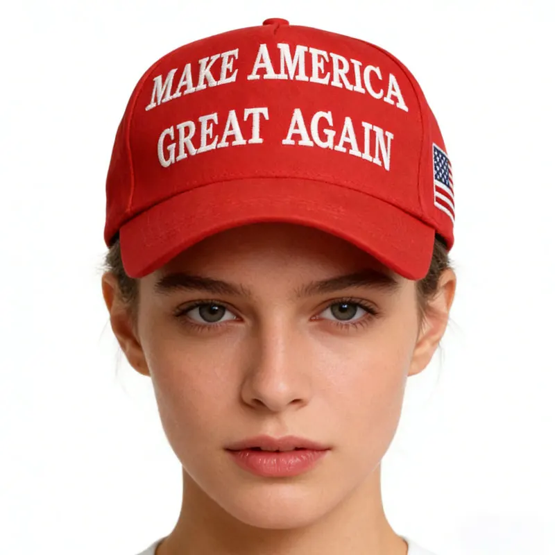 - Message emblématique : La broderie blanche « Make America Great Again » contraste parfaitement avec le tissu rouge, garantissant une parfaite lisibilité même de loin.