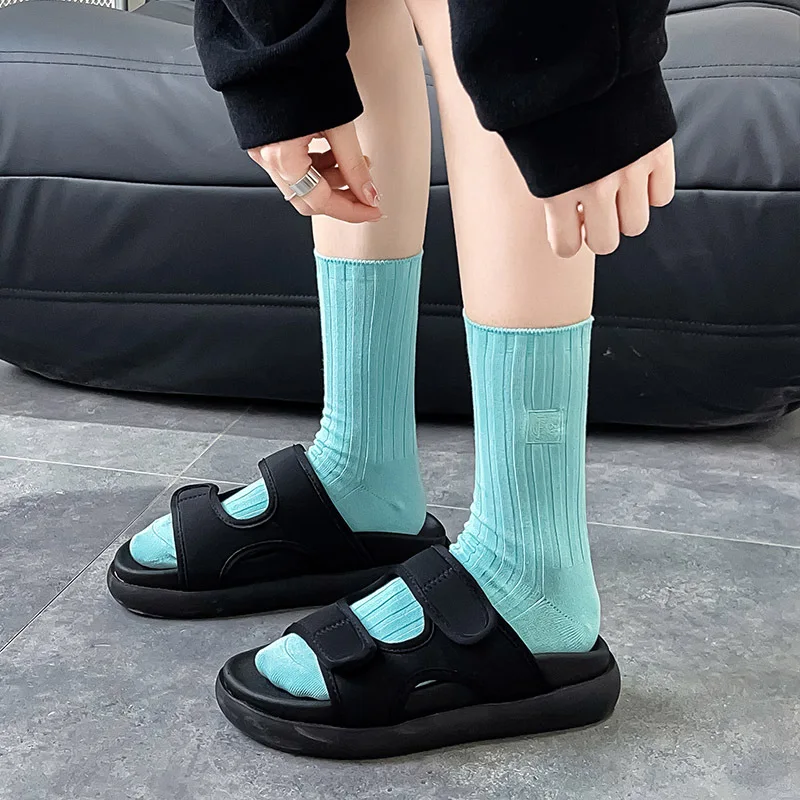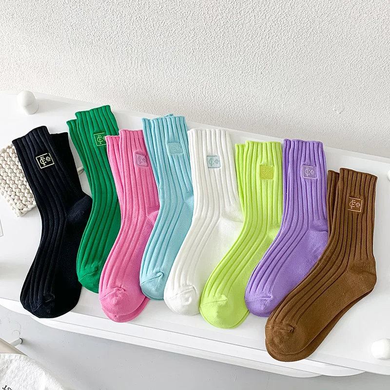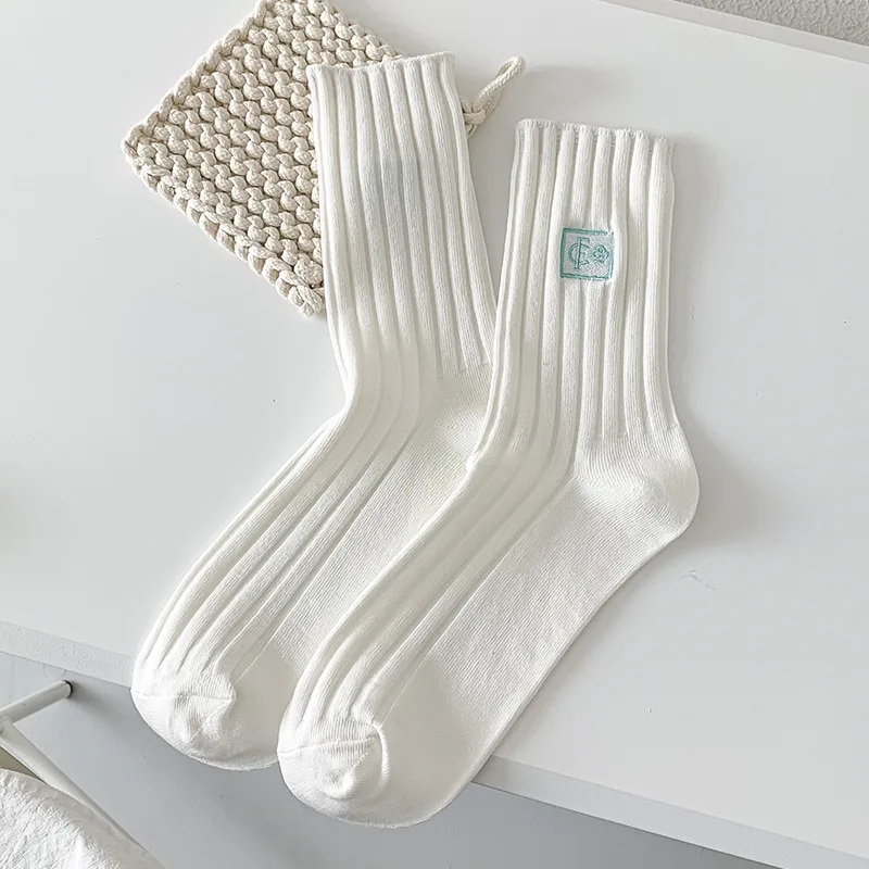 Chaussettes mi-mollet unies en cotton