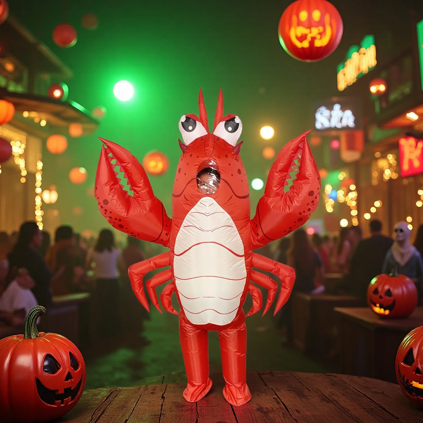 Vous cherchez le déguisement parfait pour un groupe ? Associez-le avec d’autres costumes de fruits de mer pour créer un véritable banquet marin ambulant ! La couleur rouge éclatante se voit de loin, idéale pour retrouver vos amis dans la foule d’un festival comme Coachella ou Tomorrowland.