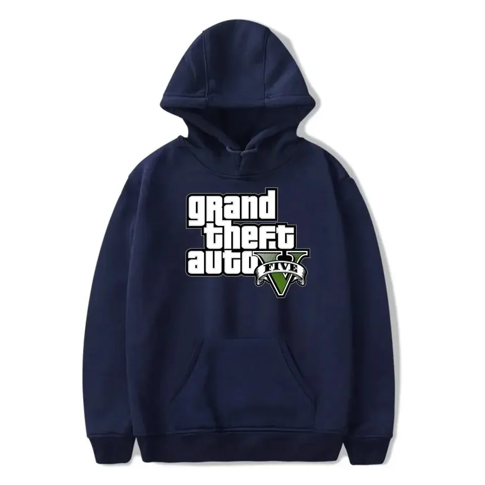 Le dos du sweat dévoile souvent le clou du spectacle : un grand imprimé qui fait immédiatement tilt. Il peut s’agir du logo iconique de Grand Theft Auto V, stylisé et reconnaissable entre tous, ou d’une illustration reprenant les éléments marquants de l’aventure. Imaginez la skyline de Los Santos avec le Maze Bank Tower en fond, ou une composition mettant en scène les trois protagonistes légendaires : Michael, Franklin et Trevor. Parfois, des détails plus subtils, comme une référence à Los Santos Customs ou au numéro de plaque « GTAV », viennent ravir les connaisseurs. Ces éléments ne sont pas là par hasard ; ils créent un lien immédiat avec des heures de jeu et d’exploration.